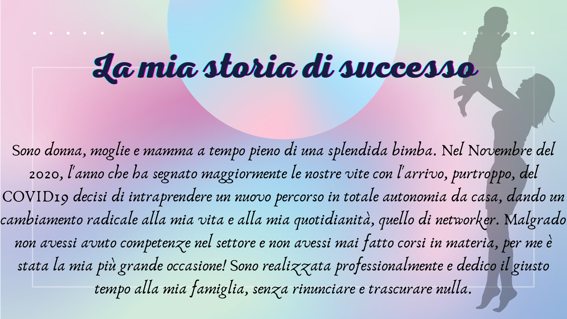 Io ho avuto un'opportunità che non ho voluto lasciarmi scappare. Di poter finalmente CAMBIARE. Ciò che ti chiedo è di guardarti attorno, vedere la realtà in cui vivi, capire che il mondo si sta evolvendo e con esso anche il mondo lavorativo!